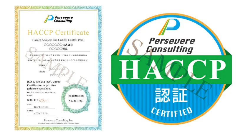HACCPと一般衛生管理の定着を確認し、HACCP認証を発行致します。