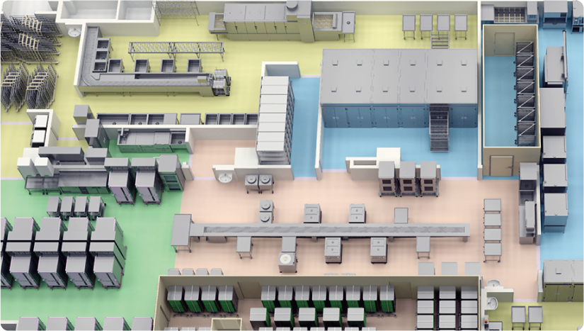 作業動線を明確にする事より、最も効率の良い機器配置もご提案します。