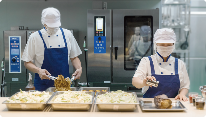 調理システムの研修と、構築を行い、作成したオペレーションマニュアルをもとに現地厨房でのトレーニングまで行います。